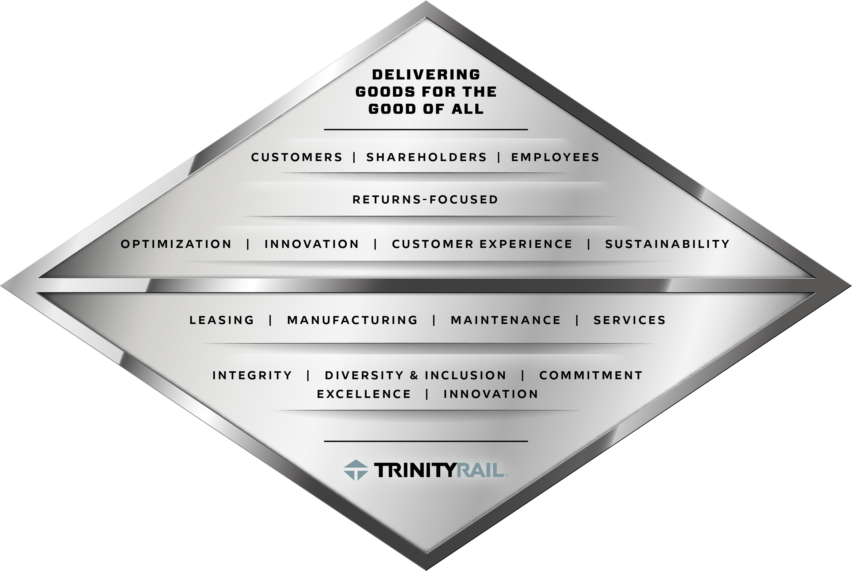 Our railcars play an important role in North America as they deliver essential goods that keep the economy moving and enrich the lives of people in communities across the continent. At Trinity, we remain committed to rail solutions that deliver goods— safely, efficiently, and sustainably - for the good of our customers, shareholders, and employees in all the communities we serve.